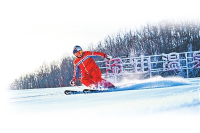 游客在鲁山县金汤山滑雪场畅快滑行,尽享冬日运动乐趣。