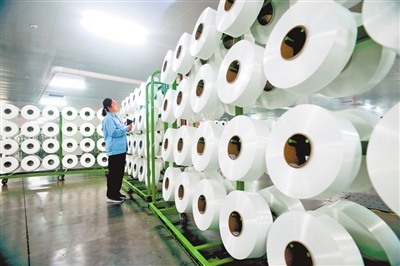 河南神马锦纶科技有限公司尼龙6民用丝一期项目正抓紧生产,职工查看尼龙6丝饼外观质量。 齐磊 摄