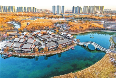 2025年12月7日,位于贾鲁河公园的明伦岛上的贾鲁河小镇。感谢河南省水文水资源中心综合部支持