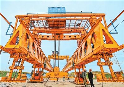 2020年11月3日,郑州贾鲁河进行架桥施工。