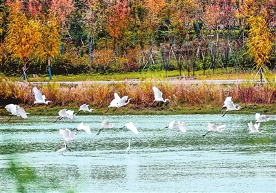 2019年11月21日,郑州贾鲁河沿岸消失的鸟类回来了。