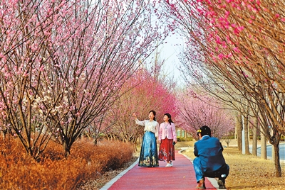 2020年3月11日,郑州贾鲁河岸边公园的花开了。