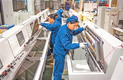 12月22日,在位于伊滨区的洛阳中重自动化工程有限责任公司车间内,工人正在加工组装一批矿用高压变频器等高端自动化控制成套设备。近年来,该公司加大产品创新力度,产品畅销国内并出口至60多个国家和地区。 张怡熙 张若含 摄
