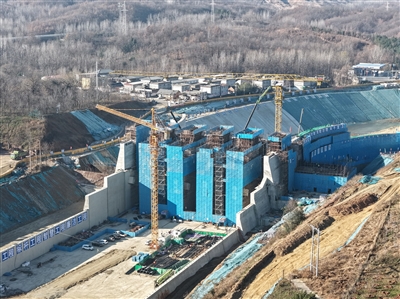 鲁山县昭平台水库扩容工程尧沟溢洪道施工现场。 彭可 摄