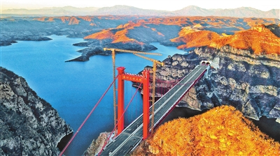 12月25日,河南济源与洛阳新安县交界处的黄河段上,世界首座独塔地锚式回转缆悬索桥——济新高速黄河三峡大桥,进入最后调试准备阶段,通车在即。大桥通车对于整合区域旅游资源、带动黄河两岸经济发展具有重要意义。 张光辉 剧晨 摄