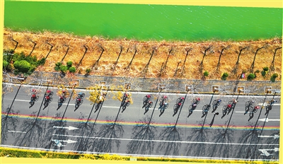12月28日,冬日暖阳下,一支骑行队伍在永城市日月湖景区骑行,乐享健康生活。 聂政 摄