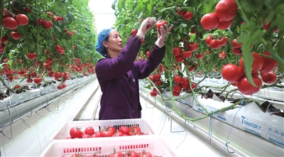 在巩固传统产业优势的同时,辉县市将敏锐的目光投向绿色低碳的新兴产业前沿,以科技之笔描绘农业现代化新图景。河南水木孟电富碳农业科技有限公司的创新实践,为这条新赛道提供了精彩样本。该公司总经理冯鹏飞兴奋地介绍,他们创新性地利用电厂排放二氧化碳,经降温提纯后输送到玻璃温室,这一举措既实现了农业系统碳中和,又显著提升了作物产能。“我们的果子在温室里能够一年四季连续结果,产量可达大田种植的30—50倍。”这一“农业富碳”模式堪称一场绿色革命,既大幅提升产出效益,更引领农业迈向可持续发展新境界。
