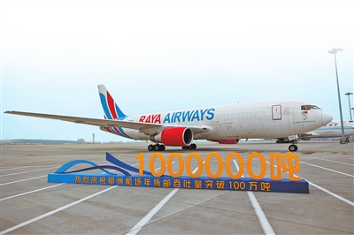 12月21日,随着马来西亚瑞亚航空一架全货机平稳落地,郑州机场年货邮吞吐量首次突破100万吨。本报记者 孔昊 摄