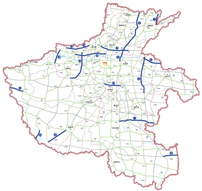 15.沁阳至伊川高速。全长99.0公里、总投资188.7亿元,位于焦作、郑州、洛阳市境内,分别长25.2公里、14.8公里、59公里。