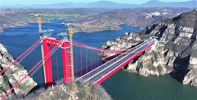 渑淅高速淅川至豫鄂省界段项目北起河南淅川,向南跨越丹江,顺接湖北十淅高速公路。项目关键控制性工程丹江小三峡特大桥是国内跨径最大的跨峡谷分离式混合梁斜拉桥,也是目前河南省最大跨径斜拉桥。本报资料图片