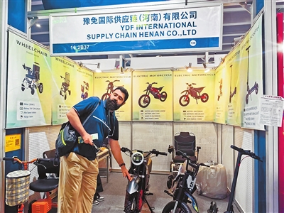 广交会上,东欧客商询问电动车的续航性能。 郭俏丽 摄