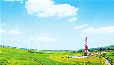 濮阳县旧油井旁风电项目。 僧少琴 摄