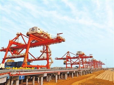自动化岸桥巍然矗立在周口港。 河南日报社全媒体记者 李时珍 摄