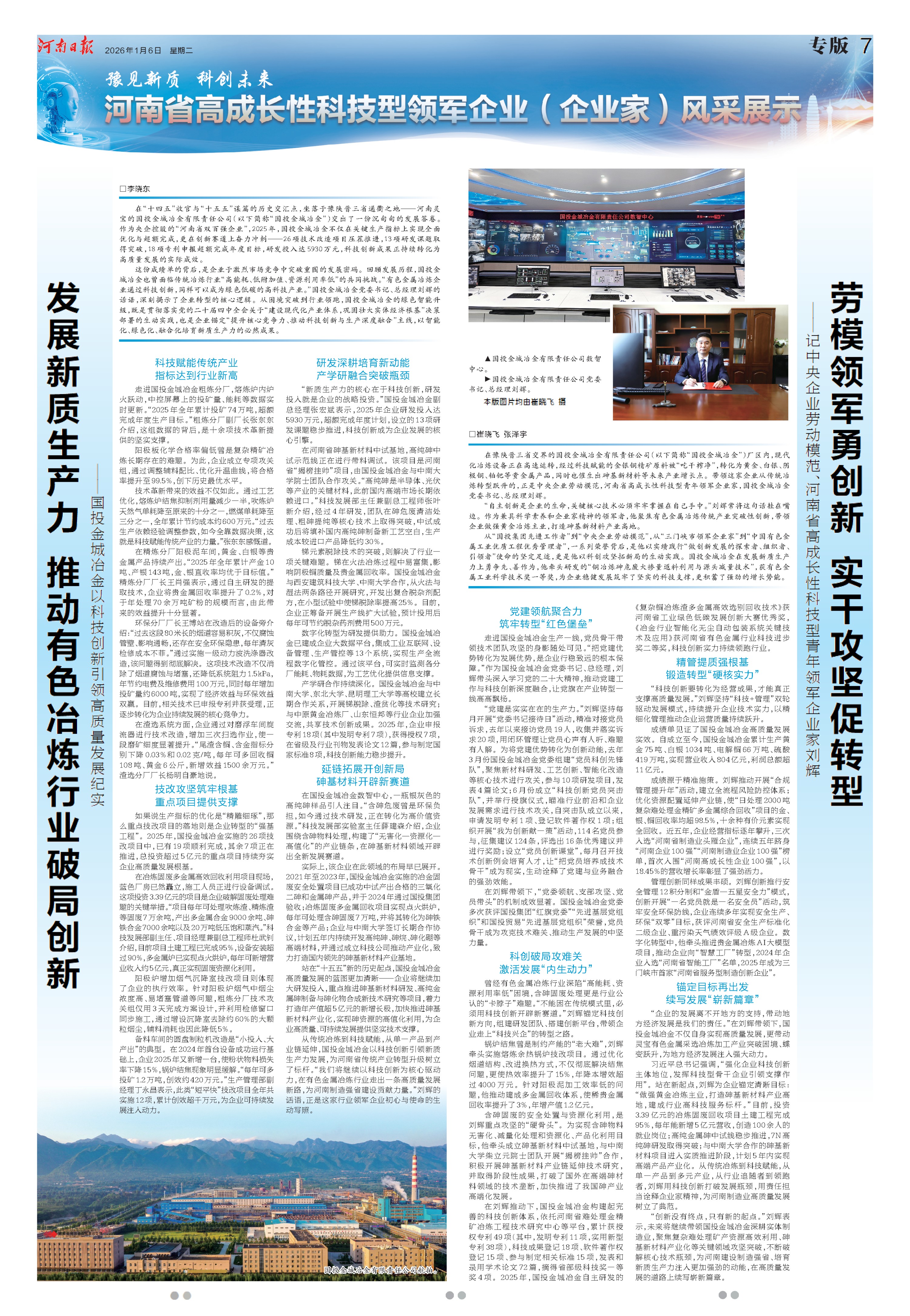 发展新质生产力 推动有色冶炼行业破局创新(豫见新质 科创未来 河南省高成长性科技型领军企业(企业家)风采展示)