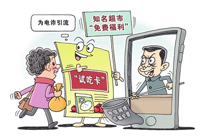 岁末年初,不少商超推出多种促销活动吸引顾客关注。然而,据新华社报道,近期在全国多地出现了一种“试吃卡”新型骗局,一些不法分子打着知名超市“免费福利”的幌子,引诱群众下载陌生App或加入“福利群”,为电信网络诈骗犯罪引流。公安部门提醒广大群众擦亮双眼,不要贪小便宜吃大亏。图/徐骏