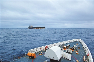 美国欧洲司令部1月7日在社交媒体上发布的消息称,美国当天在北大西洋海域扣押“贝拉1”号油轮(后)。新华社/路透