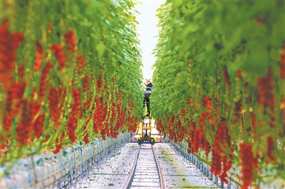 1月8日,在位于洛阳市伊滨区的洛阳国际现代农业科技示范区智能温室内,工人们忙着理蔓、采果、分拣打包,一派丰收忙碌的景象。倪睿 摄