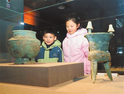 图③ 1月3日,学生在南阳市博物馆文物展厅参观。高嵩 摄