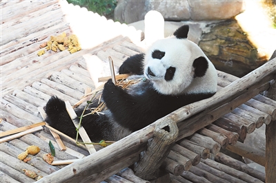 1月10日,大熊猫“辰星”“晓月”在马来西亚国家动物园大熊猫保护中心正式与公众见面。这是当日拍摄的大熊猫“晓月”。 新华社记者 程一恒 摄