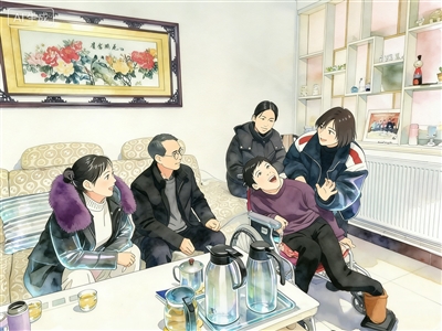 图③ 赵点(右二)与来看望她的社会人士交流。