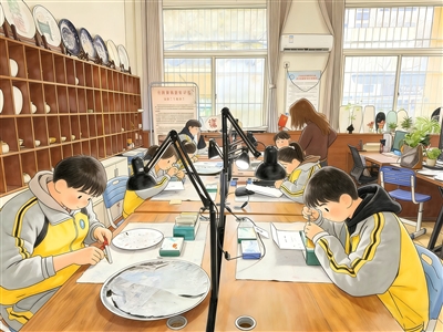 图② 安阳特殊教育学校,孩子们正在刻瓷。