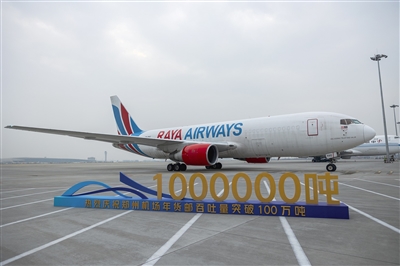 2025年12月21日,随着马来西亚瑞亚航空一架全货机平稳落地,郑州机场年货邮吞吐量首次突破100万吨。 本报记者 孔昊 摄