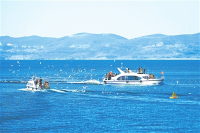 1月8日,丹江口水库澄澈碧水漾开蓝波,迁徙而来的红嘴鸥群逐浪随行,白羽与船舷共舞,晕染出冬日里的灵动生机。 陈光 摄