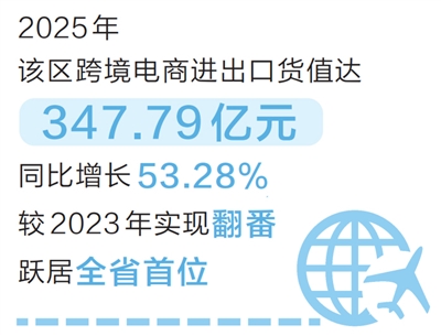 本报讯(记者 杨凌 河南日报社全媒体记者 朱喜龙)1月13日,记者从郑州航空港经济综合实验区管委会获悉,2025年该区跨境电商进出口货值达347.79亿元,同比增长53.28%,较2023年实现翻番,跃居全省首位。