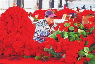 1月13日,在驻马店市驿城区沙河店镇鑫瀚工艺品有限公司车间里,工人们正有条不紊地忙着制作仿真花。该公司产品凭借精湛工艺远销欧美国家,年产值稳定在1000万元以上。 弓华静 摄