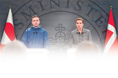 1月13日,丹麦首相梅特·弗雷泽里克森(右)和格陵兰岛自治政府总理延斯-弗雷德里克·尼尔森在哥本哈根出席联合记者会。两人会上表示,丹麦和格陵兰岛方面将向美方表达格陵兰岛绝不出售的决心。 新华社/法新