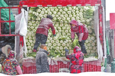 “面对今年首场雨雪,商户们都提前备货,今天凌晨两点多就向周边配送,确保新鲜的蔬菜、肉蛋等第一时间摆上农贸市场的摊位。”该中心负责人范帆说。