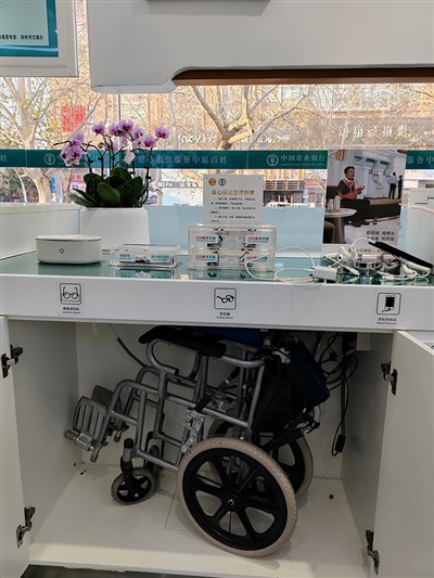 1月15日,记者在中国农业银行郑州东风路支行看到,“农情暖域便民服务区”的标识醒目,老花镜、放大镜整齐摆放在柜台,无障碍升降梯、紧急呼叫按钮、尊老卫生间、大字版标识一应俱全,“爱心窗口”“绿色通道”可优先为老年客户办理业务。