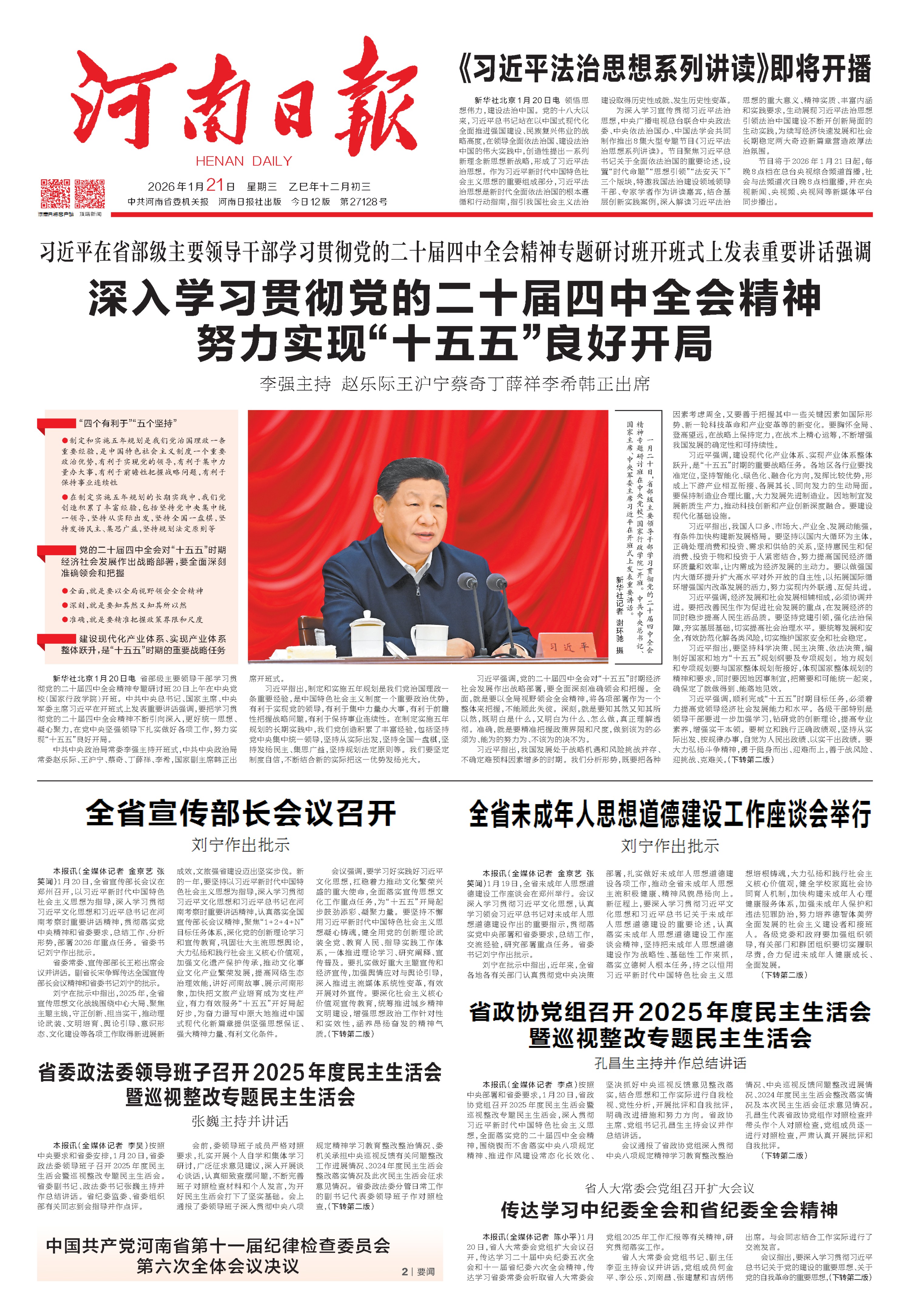 “十五五”开局之年第一课,习近平总书记对全面深刻准确把握四中全会精神再部署