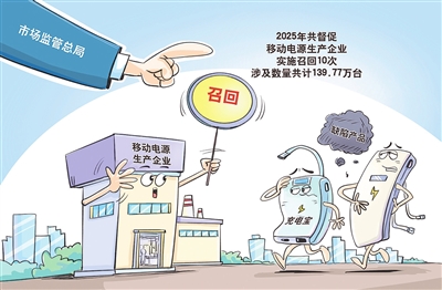 据新华社报道,市场监管总局加强问题充电宝的缺陷召回工作,2025年共督促移动电源生产企业实施召回10次,涉及数量共计139.77万台。