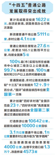在“十四五”收官之年,全省普通公路系统以实干实绩,为强省建设筑牢交通根基,为乡村全面振兴铺就康庄大道,让每一段通途都成为承载群众对美好生活向往的幸福之路。
