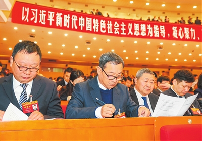 1月27日,河南省第十四届人民代表大会第四次会议在郑州举行。图为在省人民会堂,代表们在认真聆听会议。 本报全媒体记者 邓放 摄