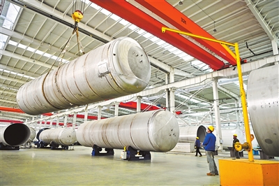 1月26日,位于南阳市社旗县的南阳杜尔气体装备有限公司,工人正在加紧生产。该公司生产的大型常压低温液体贮罐等产品畅销全国,并出口到海外市场。 张峰 摄