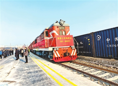 1月26日,凛冽寒风中,博爱经济技术开发区山东港口豫北国际陆港内汽笛长鸣,一列满载轮胎、新材料、特色农产品的集装箱班列缓缓驶出,一路向东经铁路抵达青岛港,无缝换乘远洋巨轮奔赴全球各地。