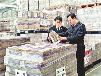 焦作海关查验人员为AEO企业大咖国际食品有限公司提供通关保障服务。 李新平 摄