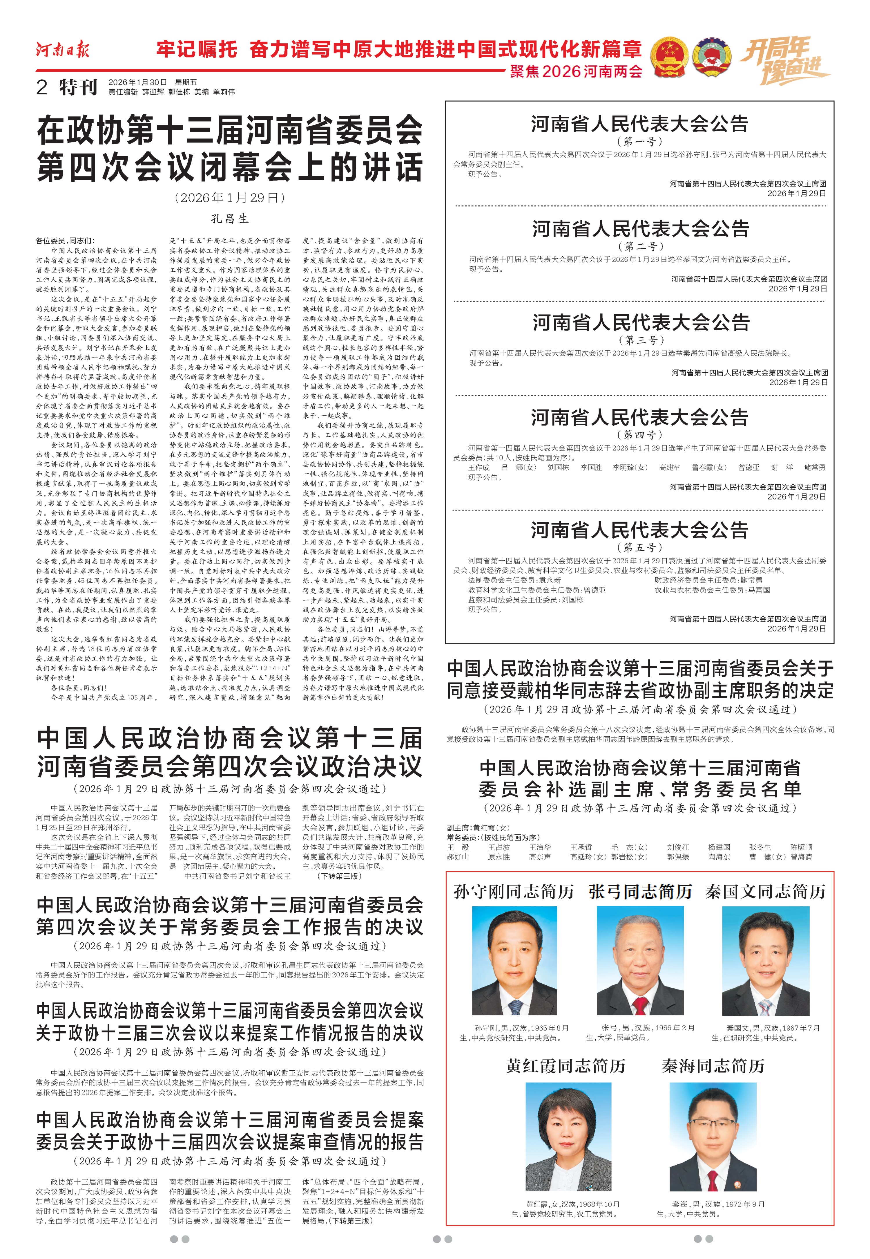 中国人民政治协商会议第十三届河南省委员会第四次会议政治决议