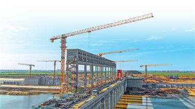 2月1日,唐河县航运郭滩枢纽码头一期项目现场,机器轰鸣,一派繁忙景象。南阳市新野水台子枢纽、王庄港区和唐河郭滩枢纽、郭滩大桥等项目正加紧施工。崔培林 张峰 摄