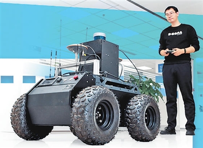 嵩山实验室研发区,空间智能感知与重建项目组的科研人员正在操控实时定位和地图构建移动测试平台。 本报全媒体记者 聂冬晗 摄