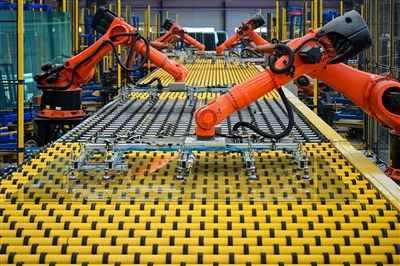 近年来,企业创新主体地位不断加强。图为洛阳汝阳耀华玻璃智能车间内,采用“洛阳浮法”第二代技术的高档浮法玻璃生产线全速运转。李卫超 尹鹏涛 摄