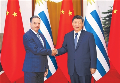 习近平指出,当今世界正处于百年未有之大变局,国际形势变乱交织,单边霸凌愈演愈烈,中方支持乌拉圭接任“77国集团和中国”轮值主席国,愿与乌方加强全球南方团结协作,共同推进平等有序的世界多极化、普惠包容的经济全球化,携手并进、共谋发展,为构建人类命运共同体作出更大贡献。中方始终重视中拉关系,支持拉美和加勒比国家维护自身主权、安全、发展利益,支持乌拉圭接任拉美和加勒比国家共同体以及南方共同市场轮值主席国,愿同乌方和地区国家推动共建中拉命运共同体走深走实。