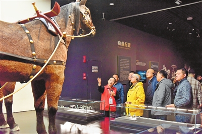 游客在殷墟博物馆一楼“殷墟车马遗迹展”参观。 彭捷 摄