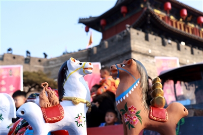 在浚县古城西城门拍摄的生肖马泥咕咕。刘肖坤 摄
