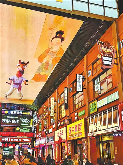 北大街·北门里商业街内,抬头可见有马年元素的巨幅天幕。本报全媒体记者 赵阿娜 摄