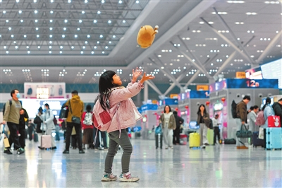 2月13日夜,郑州东站,春运人潮涌动。马年春节渐近,家长带着孩子奔赴团圆。