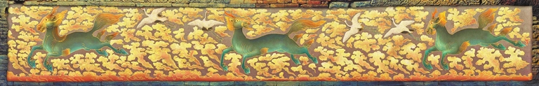 该壁画作为北宋东京城地标建筑的核心装饰,直观呈现了12世纪中国石雕艺术的巅峰水平。其宏大规模证实了汴河漕运枢纽的繁荣程度,壁画中仙鹤与海马的组合突显宋代“天人感应”的祥瑞观念。