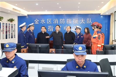 二月十六日,农历除夕,省委书记刘宁、省长王凯到郑州市金水区三全路消防救援站,看望慰问执勤队员,调研检查值班值守情况。 本报全媒体记者 董亮 摄